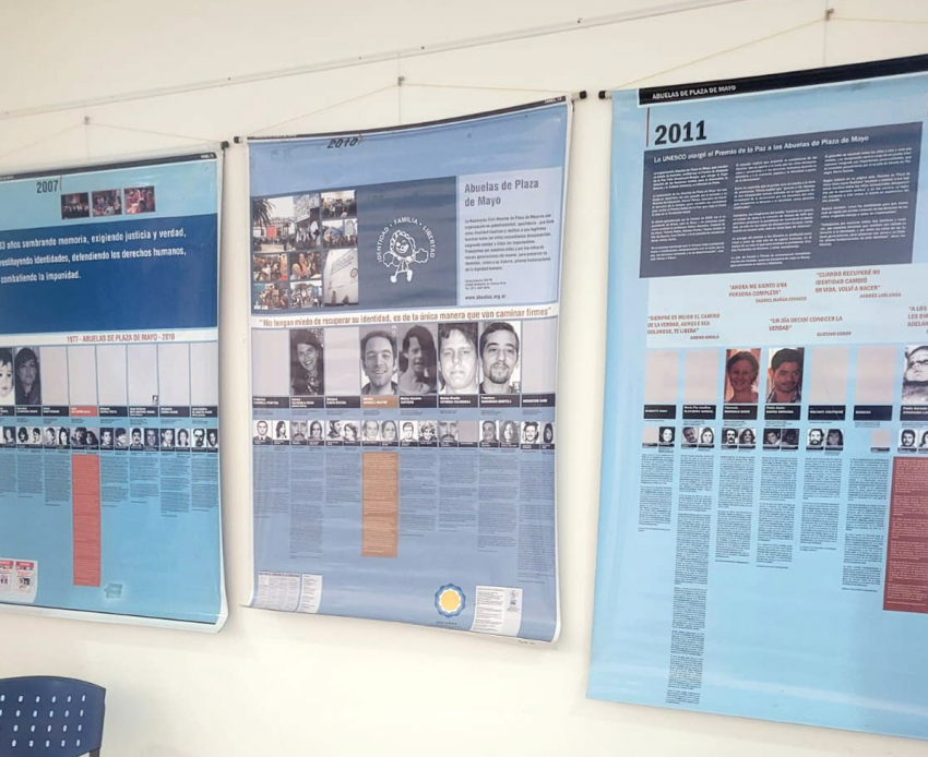 La misma está compuesta por 13 placas informativas que explican el trabajo realizado por Abuelas desde su nacimiento en 1977, los logros alcanzados, la identificación de los nietos recuperados hasta el año 2006 y la campaña permanente para la plena vigencia de los Derechos Humanos y el Derecho a la Identidad, como también los desafíos pendientes.