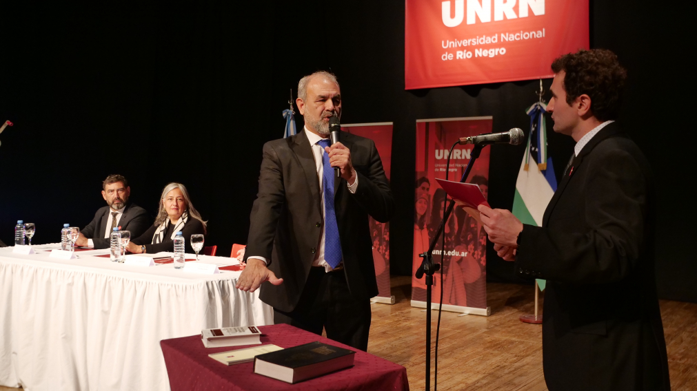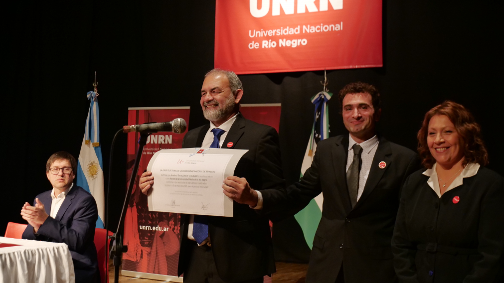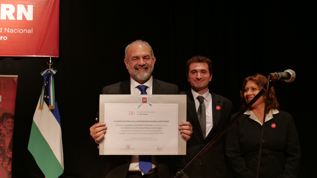 A más de dos meses de los comicios celebrados el 4 y 5 de mayo de este año que consagró a la Lista +Compromiso con el 87, 13 por ciento de adhesión entre los electores, Anselmo Torres asumió como rector, junto a la vicerrectora de la Sede Alto Valle-Valle Medio, María Andrea Tapia; al vicerrector electo por la Sede Andina, Diego Aguiar; y al vicerrector electo por la Sede Atlántica, Daniel Barrio.