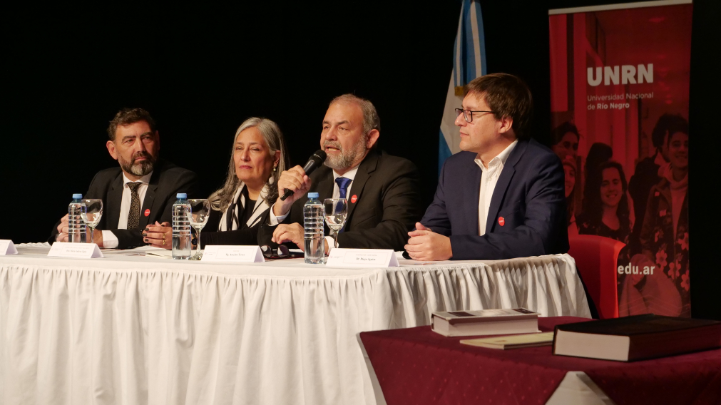 En el multitudinario acto, que se llevó a cabo en la Sala Mayor del Centro Municipal de Cultura, estuvieron presentes el subsecretario de Políticas Universitarias de la Nación, Daniel López; el subsecretario de Coordinación Institucional del Ministerio de Tecnología, Ciencia e Innovación de la Nación, Pablo Nuñez; el ministro de Educación de Río Negro, Pablo Núñez; la directora del CONICET Patagonia Norte, Celeste Ratto; la presidenta de la Comisión Nacional de Energía Atómica, Adriana Serquis; la diputada nacional Graciela Landriscini; el diputado nacional Pedro Dantas; la vicerrectora de la Universidad Nacional de La Pampa, Maria Ema Martin; el vicerrector de la Universidad Nacional del Comahue, Paul Osovnikar; el rector de la Universidad Pedagógica Nacional, Carlos Rodriguez y la rectora de la Universidad Nacional de la Patagonia San Juan Bosco Antonia Lidia Blanco; autoridades de la UNRN, centros de estudiantes y comunidad universitaria.