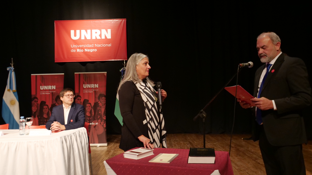 En el marco de la ceremonia protocolar realizada este lunes en el Centro Municipal de Cultura de Viedma se puso en posesión de los cargos de rector, vicerrectora y vicerrectores y se entregaron los diplomas de asunción a cuatro representantes de los diferentes claustros que integrarán los Órganos Colegiados de gobierno de la UNRN del próximo período de gestión institucional.