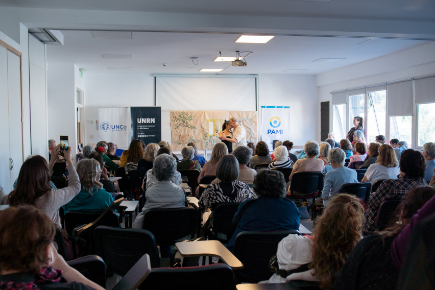 El evento contó con el acompañamiento de autoridades y referentes institucionales. Por parte de la UNRN participó la subsecretaria de Extensión, Mabel Chrestia y Sebastián de la Serna, jefe del Departamento de Educación Continua. Por el CRUB estuvieron presentes el decano Marcelo Alonso y la secretaria de Extensión, Flavia Santamaría. Asimismo, PAMI estuvo representado por la jefa de la Agencia Bariloche, Patricia Lorenzo, el referente de UPAMI para Bariloche y El Bolsón, Iván Greppi Seveso, y miembros del equipo de Trabajo Social.