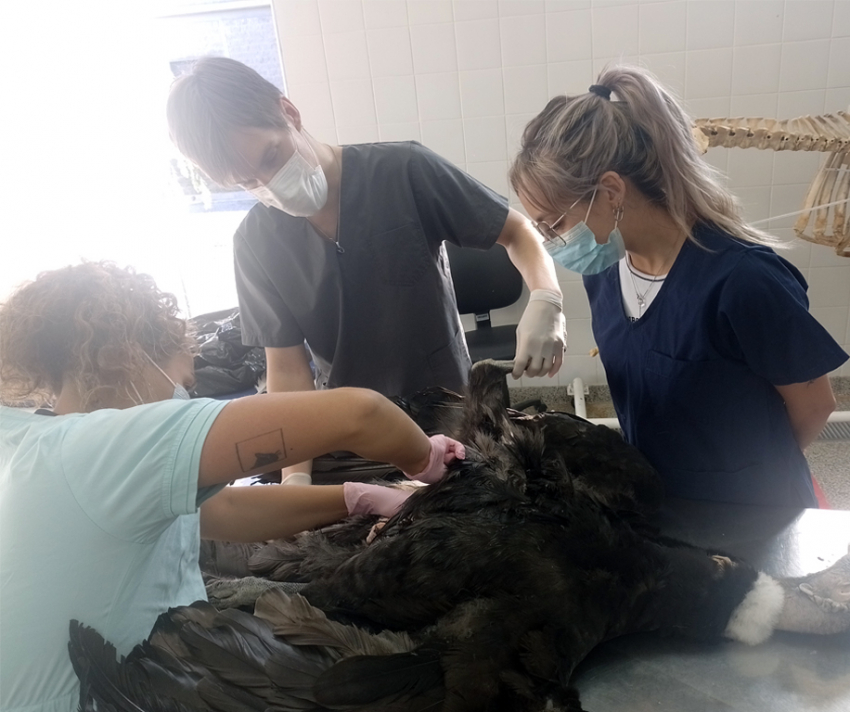 El 25 de agosto del corriente año, docentes y estudiantes de la carrera de Medicina Veterinaria de la Universidad Nacional de Río Negro (UNRN) realizaron una necropsia en el Hospital Escuela de Medicina Veterinaria, a solicitud del Programa de Conservación del Cóndor Andino.