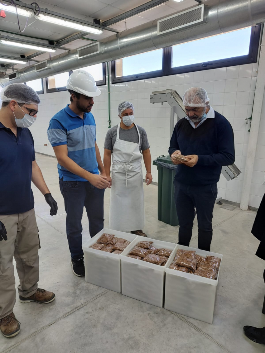 Previo a la reunión académica, el rector, acompañado por la secretaria de Investigación de esa sede, Dra. Noelia Carmona, visitó la Planta Piloto de Alimentos Sociales de la UNRN en esa ciudad, donde conoció in situ el proceso de producción del guiso de lentejas que la Universidad lleva adelante.