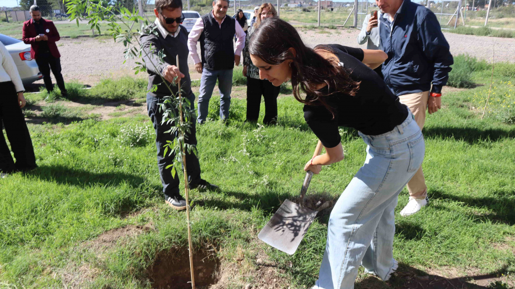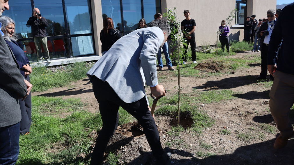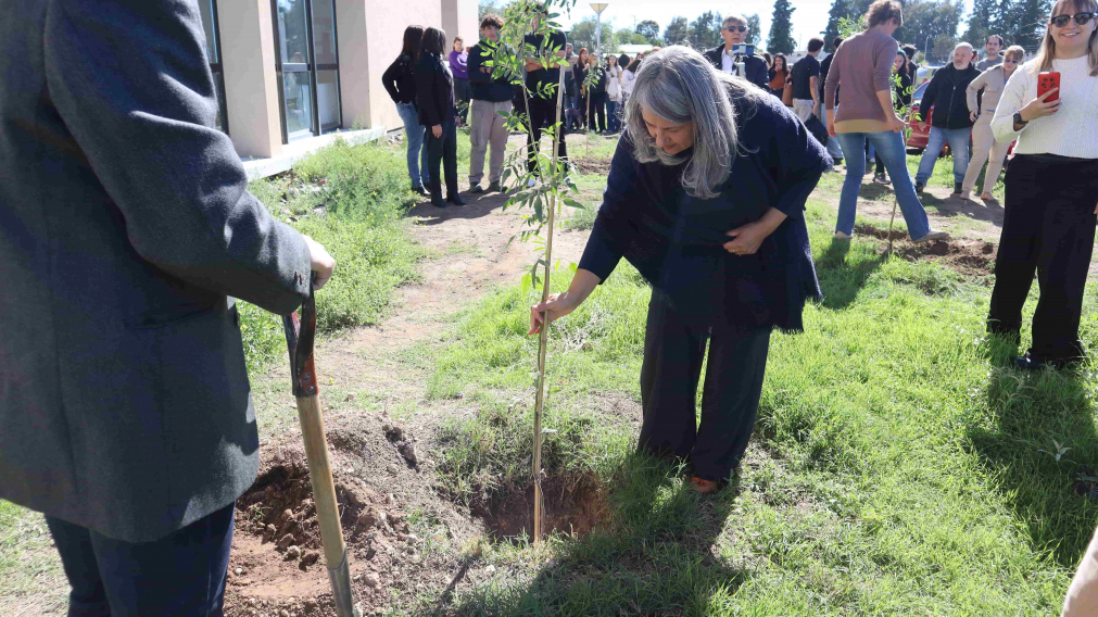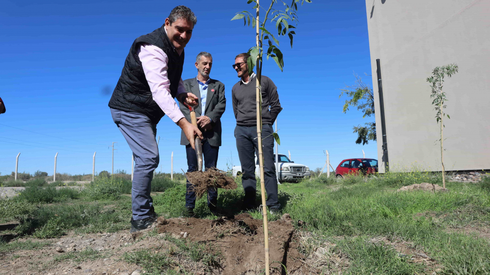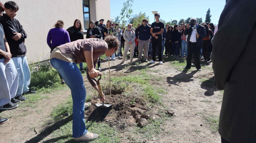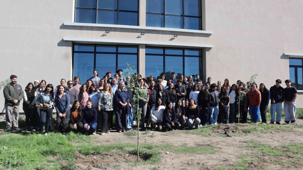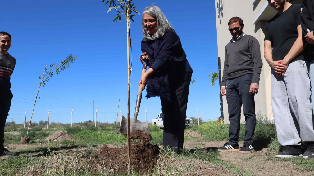 Tras un acto encabezado por la vicerrectora de la Sede Alto Valle - Valle Medio de la Universidad Nacional de Río Negro (UNRN), Ph. D. Arq. María Andrea Tapia, se plantaron tres árboles con motivos simbólicos frente al edificio académico.