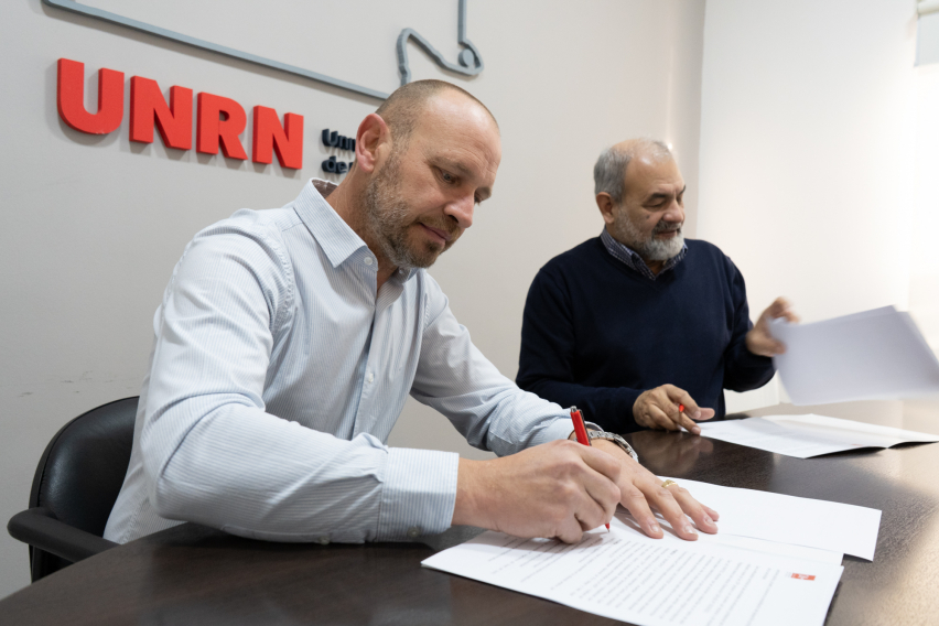 El rector de la Universidad Nacional de Río Negro, Anselmo Torres firmó esta mañana un convenio marco de colaboración institucional con el intendente de Fernández Oro, Gustavo Fabián Amati.