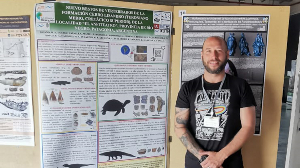 "Fue una experiencia muy enriquecedora en lo laboral, porque se trata de un congreso que se realiza cada cuatro años y, obviamente, los investigadores, becarios y técnicos que asisten presentan los avances que desarrollaron durante ese período. Es una manera de mantenernos al tanto de lo que están investigando otros grupos y profesionales en cada uno de sus campos, y así lograr una actualización real de la disciplina. Desde un costado más lúdico y social, también es una oportunidad para reencontrarse con colegas y amigos que no vemos hace tiempo, aunque sigamos trabajando en conjunto. Además, en esta ocasión, tuve la oportunidad de presentar lo que vengo desarrollando en los últimos años, especialmente mis hallazgos paleontológicos más recientes", comenta Mattia Baiano, becario del CONICET en el Museo Paleontológico Municipal "Ernesto Bachmann", Villa El Chocón, Neuquén.