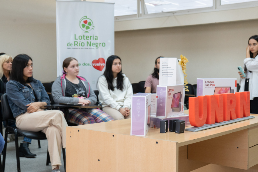 El acto de reconocimiento y anuncio público de las producciones ganadoras se realizó el martes 4 de noviembre a las 11:00 horas, en la Sede Atlántica de la UNRN, contando con la participación de autoridades universitarias y representantes de Lotería de Río Negro y estudiantes de las tres sedes.