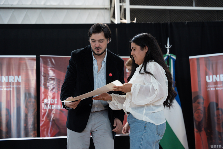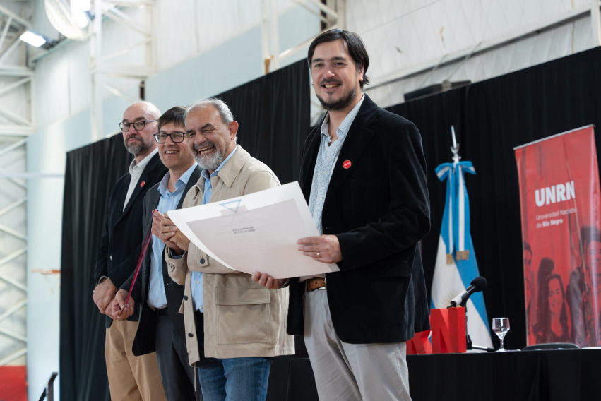 En su discurso dirigido a los graduados y graduadas, el rector Anselmo Torres recordó que la universidad “debe ser un espacio de libertad crítica y de diálogo transformador” y que “la Universidad Nacional de Río Negro nació con esa vocación, la de ser una frontera del pensamiento y de la justicia cognitiva”. También animó a quienes se graduaron a llevar consigo la misión de “sostener la verdad, incluso cuando se vuelve incómoda” y a “ejercer su saber con ética, empatía y sentido de comunidad”.