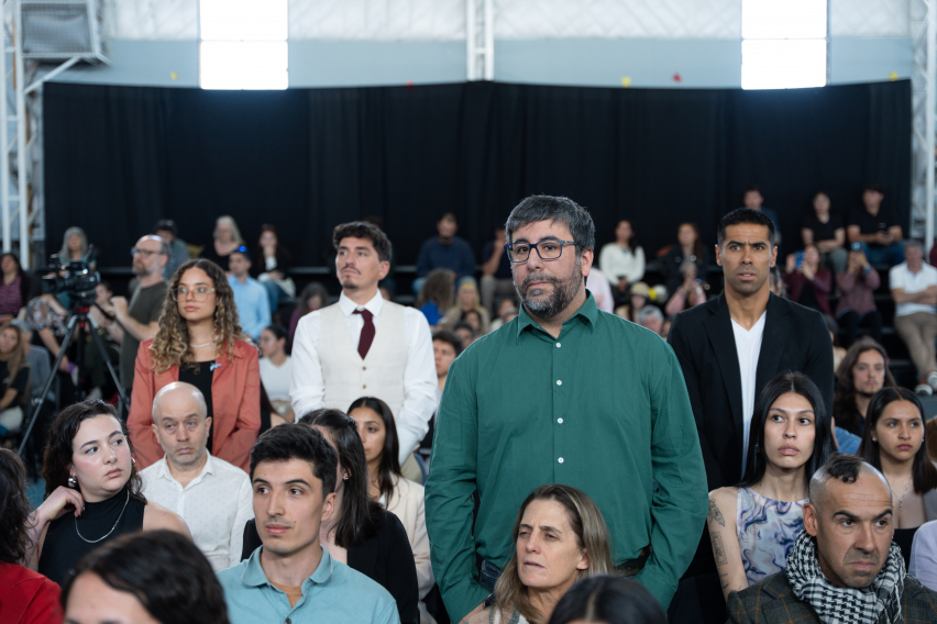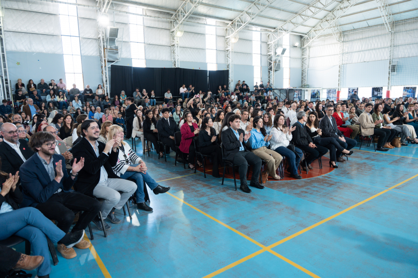 Por su parte, el vicerrector Diego Aguiar mencionó el aumento en la cantidad de títulos que se entregaron: “Veníamos teniendo un promedio de 50 títulos por acto de graduación y en esta oportunidad entregamos 90”. Y reflexionó sobre este hecho como un logro compartido: “Estos logros son fruto del trabajo en equipo de muchas personas, que trabajan día a día con un enorme compromiso y profesionalismo. Pero todo esto funciona con el esfuerzo y la responsabilidad de los estudiantes. Si no está del otro lado el esfuerzo de ustedes, de sus familias, esto sería mucho más complicado”. Asimismo, incentivó a los graduados y graduadas a ser embajadores de la universidad: “A los graduados y graduadas les pedimos que si quieren que sus hijos y futuras generaciones de argentinos y argentinas tengan las mismas posibilidades que ustedes de estudiar en una universidad gratuita, de calidad, inclusiva, sigan defendiéndola desde el lugar en donde les toque estar”.