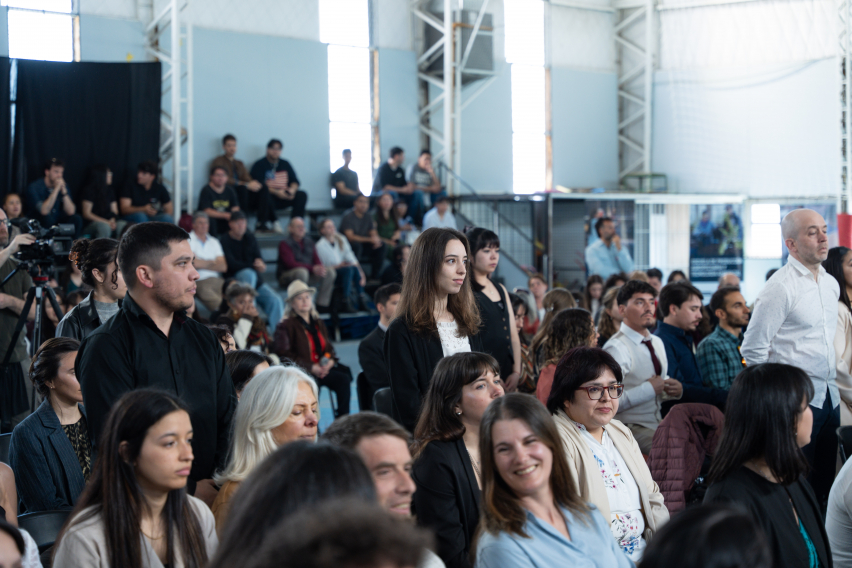 Por último, y en representación de los graduados y graduadas, Elizabeth Anabel Giménez del Profesorado de Nivel Medio y Superior en Física, compartió un sentir común con sus compañeros y compañeras. “Hoy estamos acá para recibir nuestro título, un título que no solo representa los conocimientos adquiridos todos estos años, también atesora experiencias, risas, amistades y recuerda las dificultades superadas”. Como primera generación universitaria, destacó el sacrificio que hacen día a día estudiantes, que también son “madres, padres, hijos, hijas, nietos, nietas, trabajadores y trabajadoras” y recordó que “esta universidad nos abrió las puertas para conocer, pensar, debatir y redescubrirnos. Somos mucho más que personas formadas académicamente”.