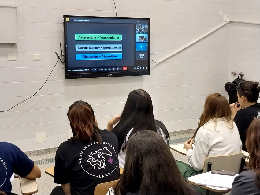Asistieron estudiantes, docentes y profesionales del ámbito privado vinculados a diversas ramas de las ciencias de la salud. La actividad estuvo a cargo de la Dra. Valeria Amable y fue organizada por los docentes Carlos Javier Dubiel y Martín Rafael Daniele, responsables de la Asignatura Farmacología y Bases de la Terapéutica de la Carrera de Medicina Veterinaria. Durante la actividad se abordaron temas como la problemática global de la resistencia a los antimicrobianos (RAM), los mecanismos biológicos que la favorecen y las estrategias para un uso racional y responsable de estos fármacos. También se destacó la necesidad de trabajar bajo el enfoque de “Una Salud”, que integra las dimensiones humanas, animal y ambiental como parte de un mismo sistema.